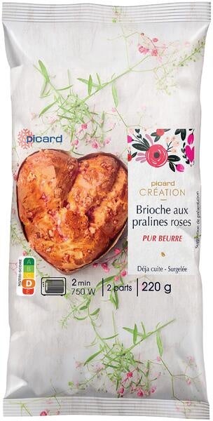 リヨン名物でもある、ピンクの砂糖衣に包まれたローストアーモンド、“プラリーヌローズ”を砕き、ブリオッシュ生地に混ぜ込んでハート型に焼き上げた、スウィートなブリオッシュです。