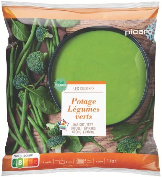 フランス産のインゲン、ブロッコリーをベースにクリーム、塩で味を調えたスープです。小さい塊状に凍らせていますのでお好みの量だけ温めてお召し上がり頂けます。