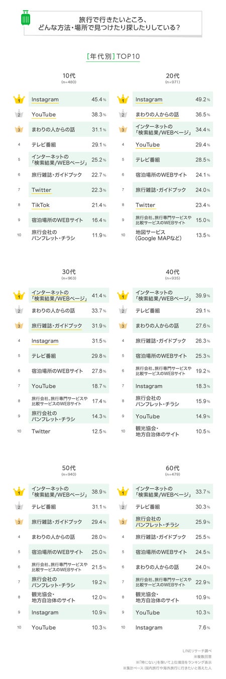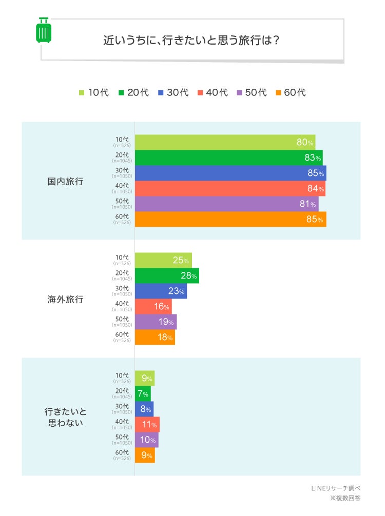 【LINEリサーチ】近いうちに行きたいと思う旅行は「国内旅行」が8割超 旅行先の探し方は10〜20代では「Instagram」、30代以上では「検索結果/WEBページ」が1位