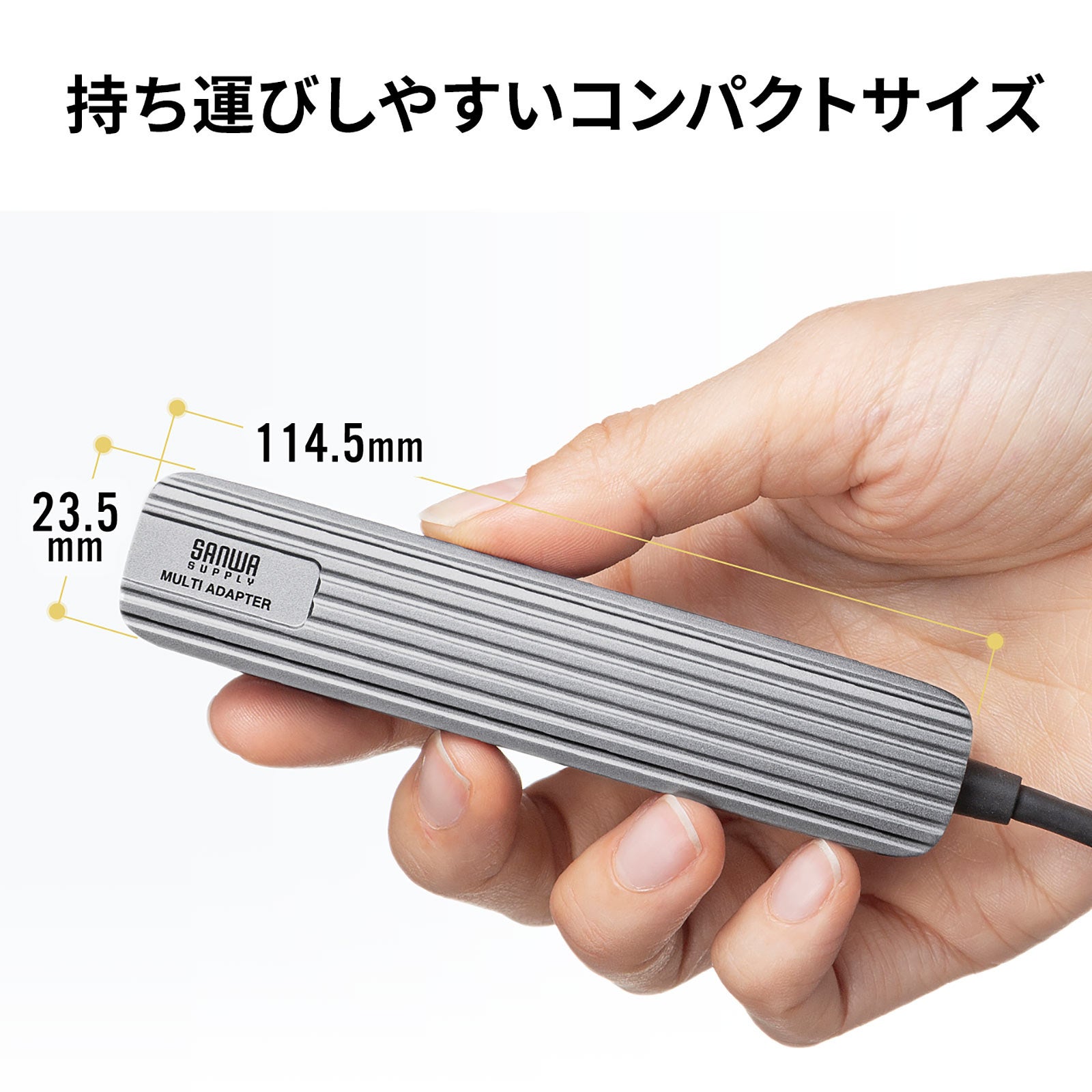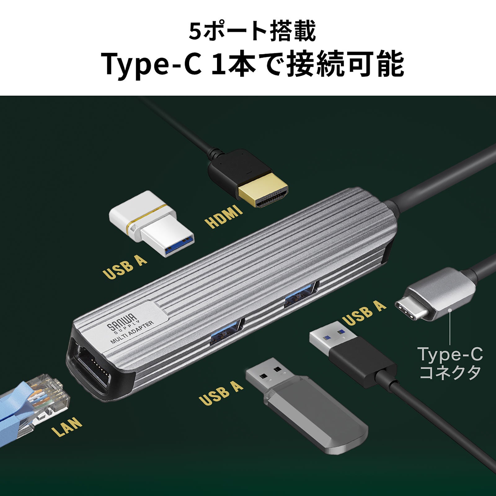 USBハブ HDMI出力対応 小型 ドッキングステーション LANポート Type-C アルミ素材 ケーブル長50cm