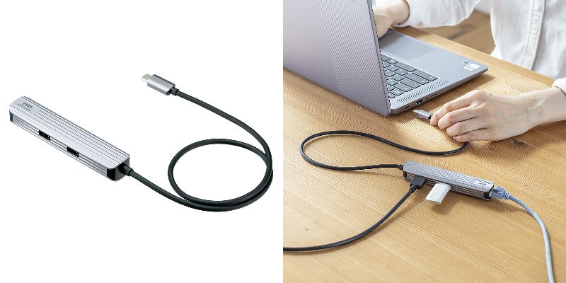 本製品は、Type-Cケーブル1本でHDMI、USB A、Type-C、LANなどの拡張接続ができるUSB Type-Cハブです。