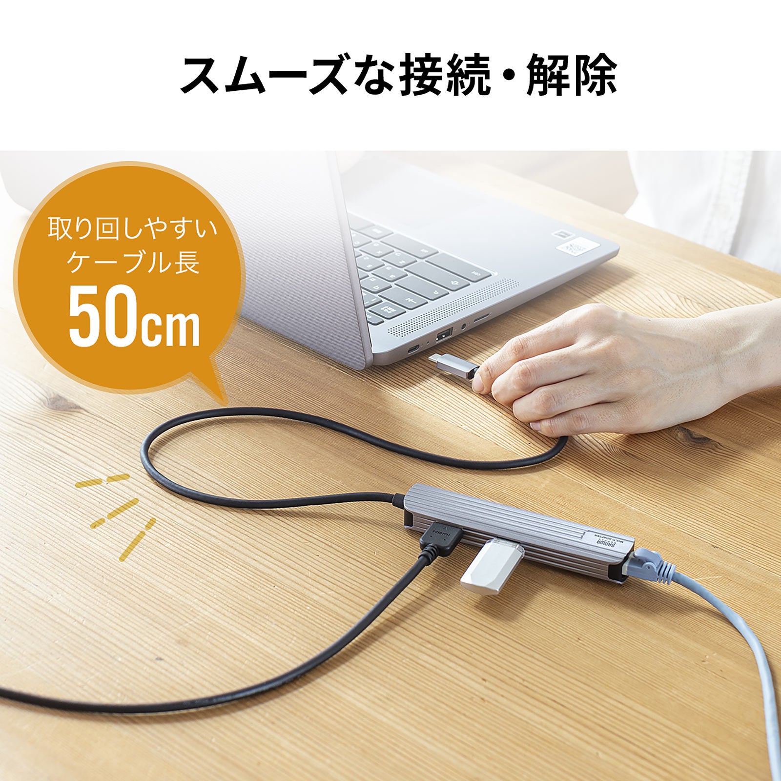 USBハブ HDMI出力対応 小型 ドッキングステーション LANポート USB A ×3 アルミ素材 ケーブル長50cm