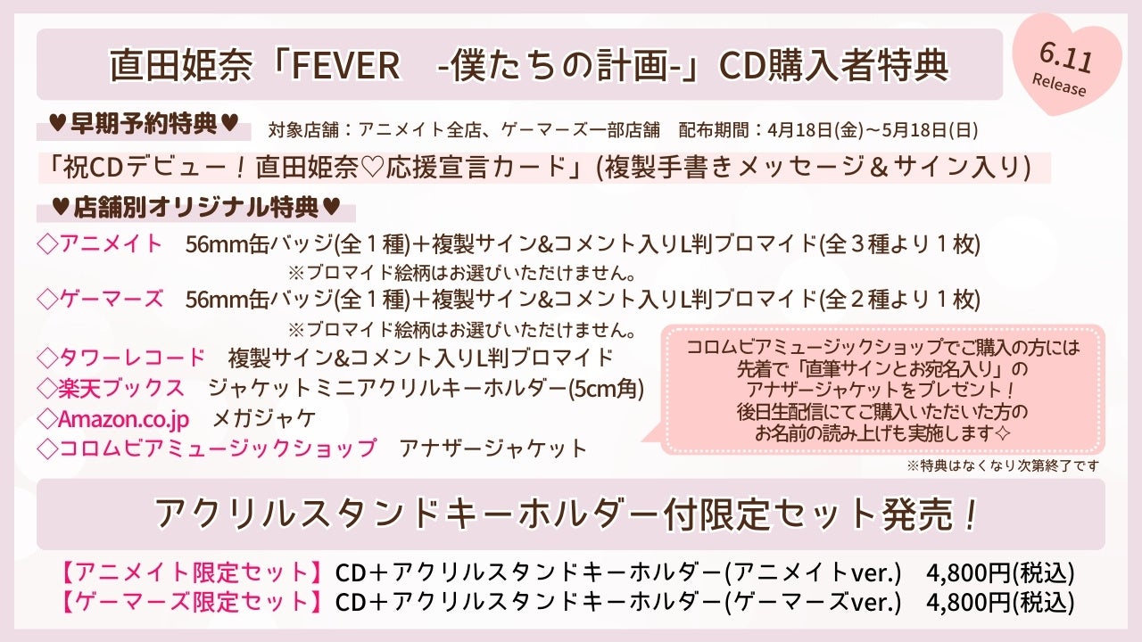 ◇直田姫奈 1stアルバム「FEVER -僕たちの計画-」発売記念イベント開催決定!