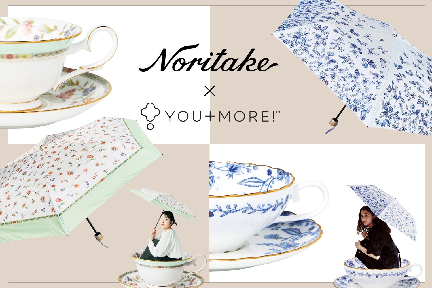 憧れの洋食器ブランド「Noritake」が傘に。名作ティーカップを「身にまとい、街に連れ出したい」という着想から生まれた晴雨兼用折りたたみ傘がフェリシモ「YOU+MORE!」から新登場