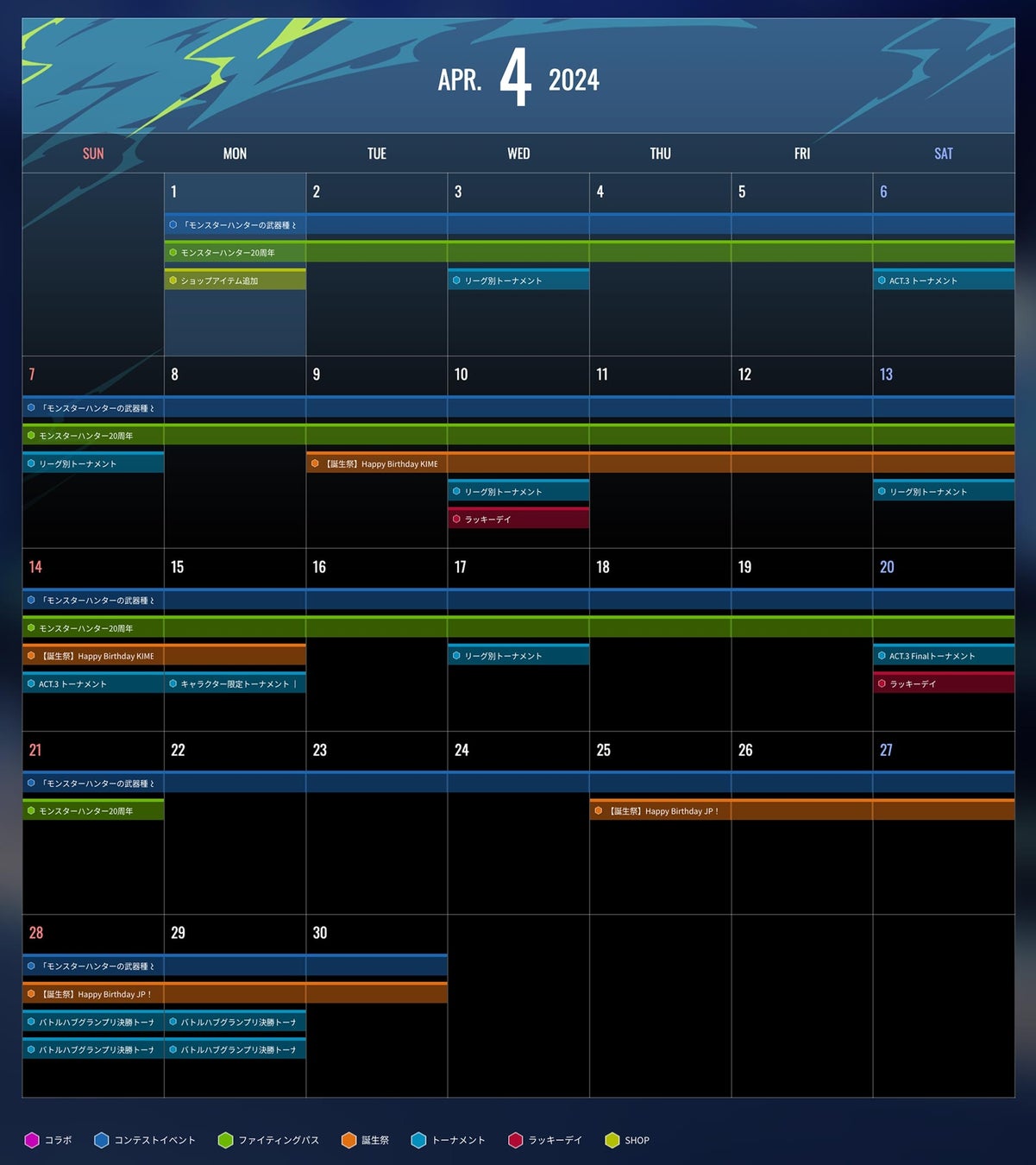 4月のゲーム内イベントスケジュールをチェックしよう!