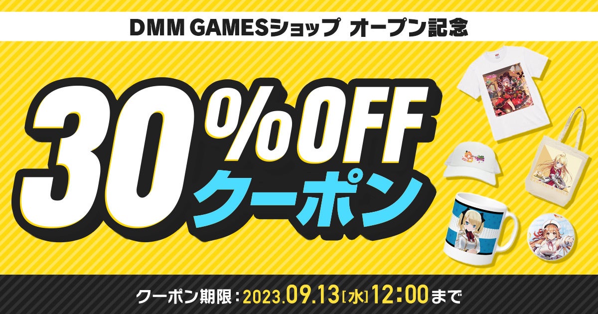 『DMM GAMESショップ』オープン記念として、お一人様1回のみご使用いただける期間限定30%OFFクーポンを配布中です。DMM GAMESショップの全商品にご使用いただけますので、この機会にぜひご利用ください。