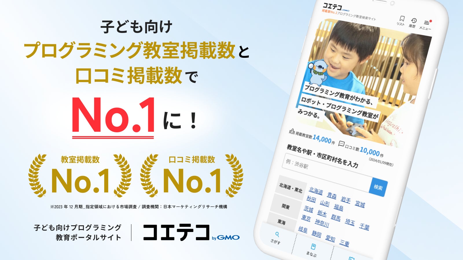 「コエテコ byGMO」子ども向けプログラミング教室掲載数と口コミ掲載数でNo.1に!【GMOメディア】
