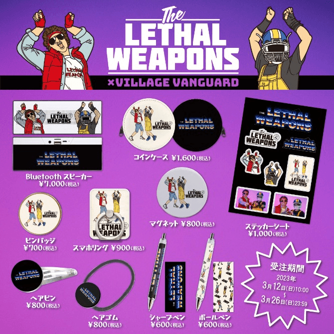 2023年3月12日(日)より、【ザ・リーサルウェポンズ】のヴィレッジヴァンガード限定グッズが発売決定!