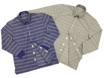 伸縮性が高く、清涼感のある麻入り素材のニットです。スナップボタン仕様で留め外しがしやすく、氏名が記入できるネームタグ付きで、洗濯機で丸洗い可能と機能性も抜群です。