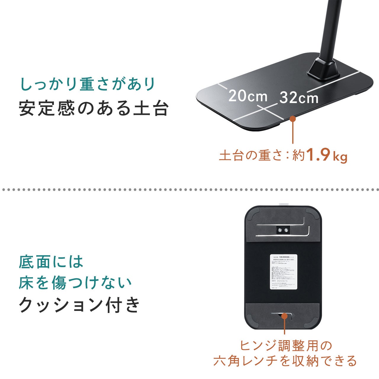 安定感のある幅20cm、奥行き32cmの台座で、しっかりとスタンドを支えます。