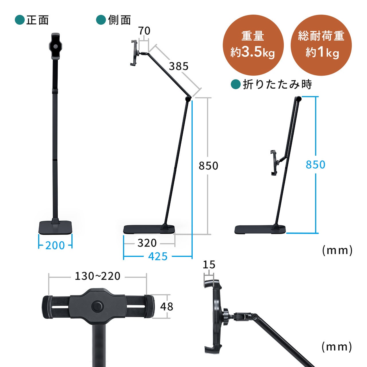 本製品のサイズは約W200×D425×H1235mm(※高さはホルダー除くアーム長)、 重量は約3.47kgです。