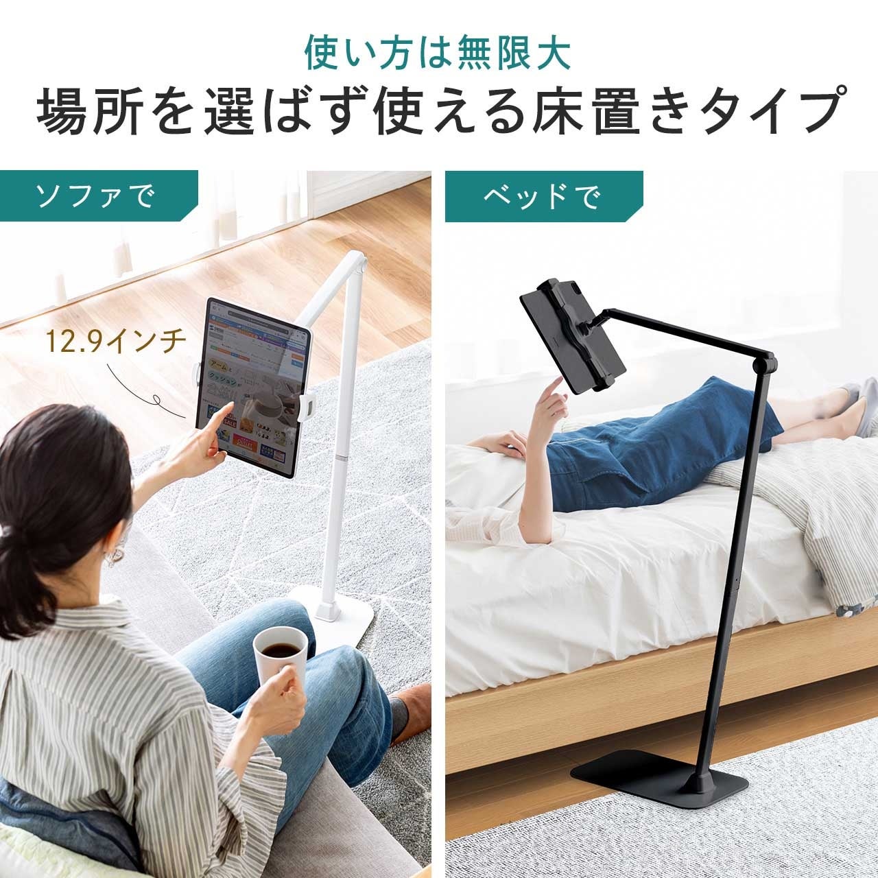 iPad タブレット フロアスタンド アームスタンド 4~13インチ対応 床置設置 高さ調節可能 360度回転 寝ながら ベッドサイド 動画配信 サイネージ