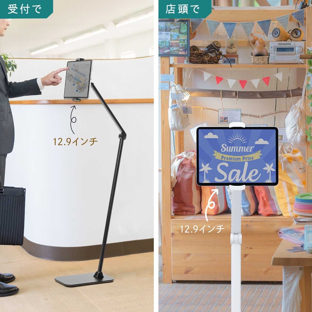 本製品は、タブレットの設置に最適な自立型フロアスタンドです。