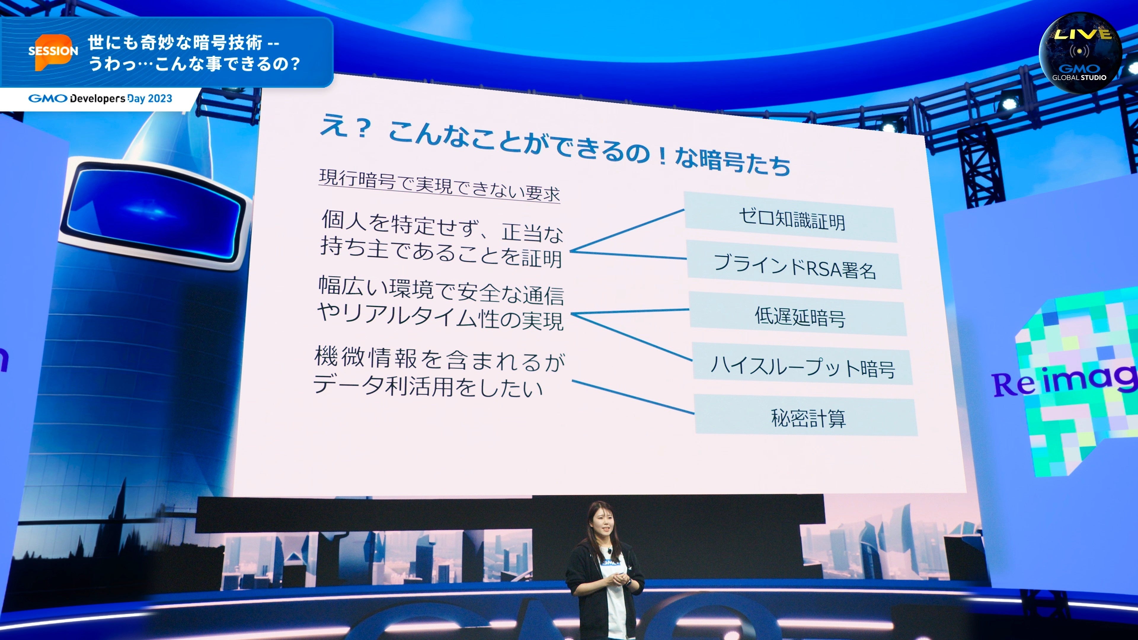 2020年より毎年開催している「GMO Developers Day」は、GMOインターネットグループの最新技術を活用した新しい挑戦や、世の中が抱える課題解決への取り組みを、事例を交えて紹介するテックカンファレンスです。開催4回目となる今年は「Re imagination -新たな可能性の追求」をコンセプトに、「AI(人工知能)」「セキュリティ」「エンジニア」などの技術と、クリエイティブによる挑戦について、全32セッションをお届けしました。