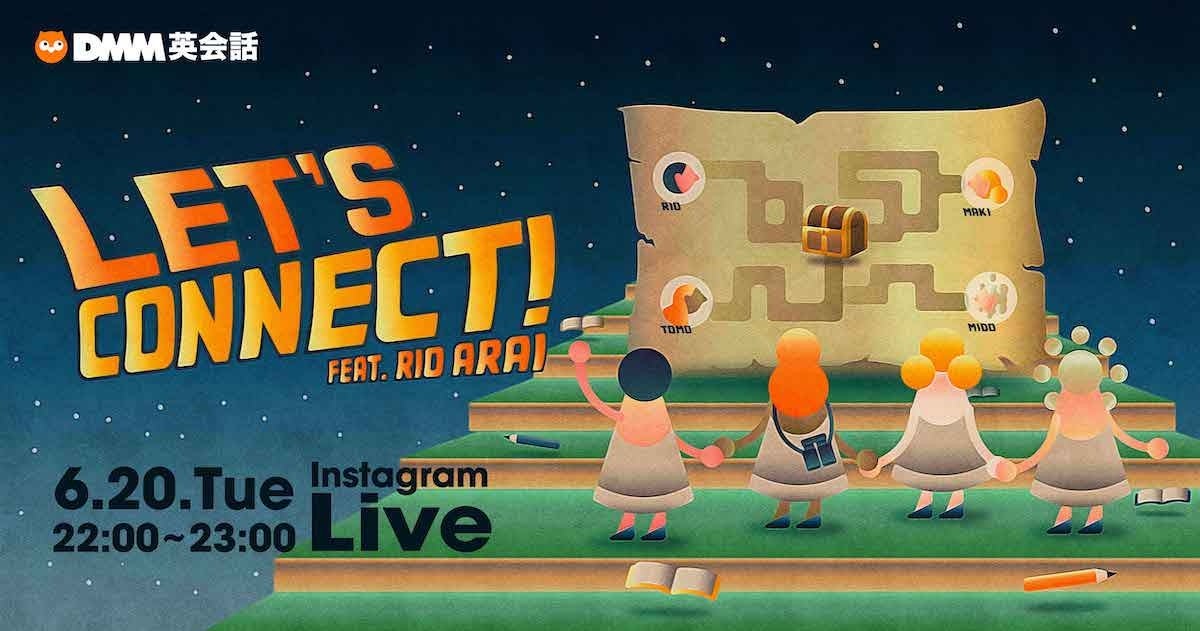 DMM英会話のヘビーユーザーとしても知られる新井リオさんとのコラボレーションは今回で5回目。これまでにインスタグラムライブやオンラインイベントなど、さまざまなコラボレーション企画を実施し好評を博してきました。今回は、ゲストにDMM英会話のユーザー2名を招き、憂鬱な気分になりやすい梅雨シーズンに視聴者の英語学習に対するモチベーションアップを目指す、ライブ配信『LET’S CONNECT! 〜英語学習の悩みやヒントをシェアして繋がるインスタライブ〜』を実施します。