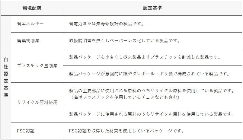 このエコマークを、自社独自に定めた環境配慮基準を1つ以上クリアした製品に表示しています。