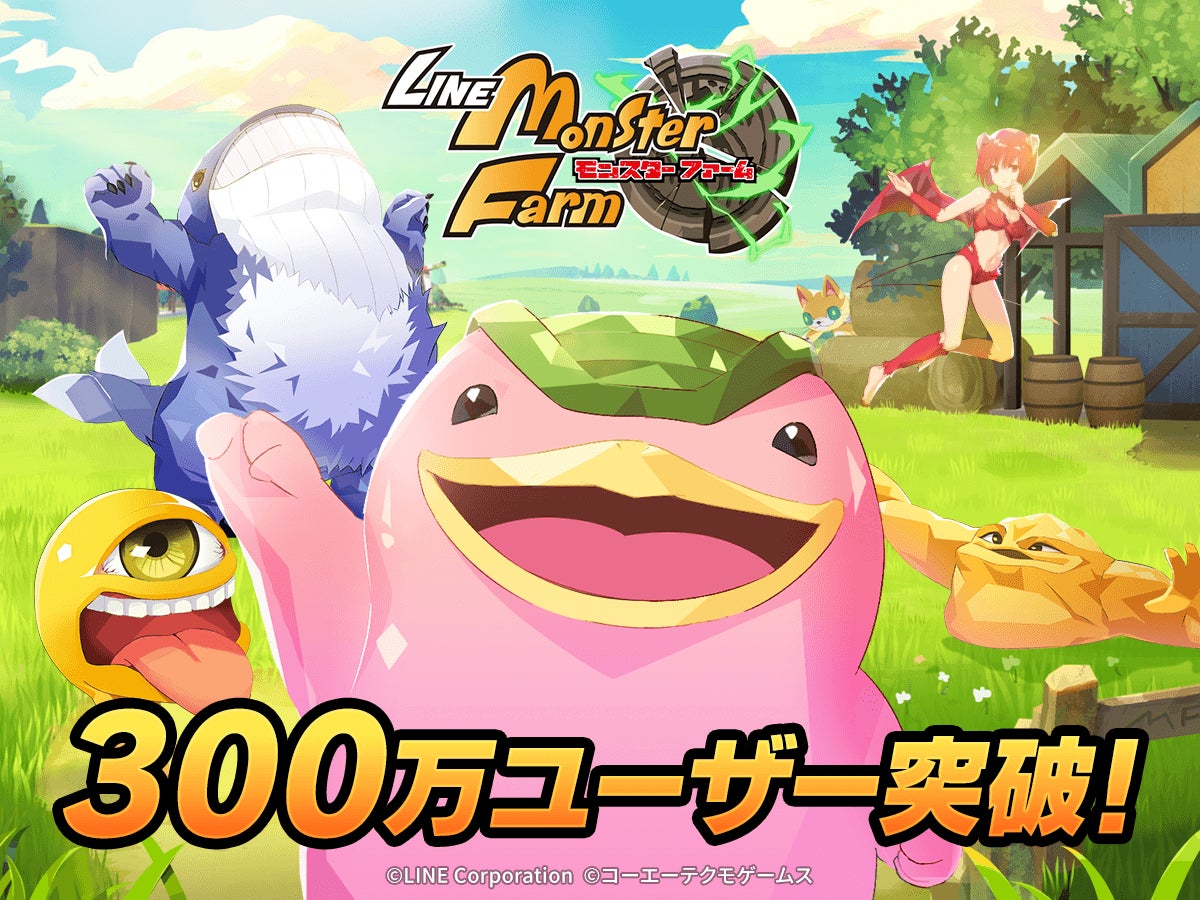LINE株式会社は、株式会社コーエーテクモゲームス(本社:神奈川県横浜市、代表取締役社長:鯉沼久史、以下:コーエーテクモゲームス)が手掛けるモンスター育成シュミレーションゲーム「モンスターファーム」の最新作スマートフォン向けゲームアプリ「LINE:モンスターファーム」において、ユーザー数が300万人を突破しました。