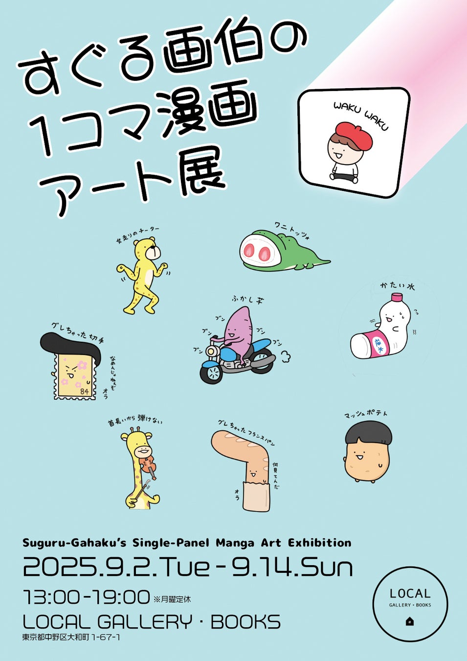 吉本興業所属の大人気イラストレーター・すぐる画伯が、2025年9月2日(火)~9月14日(日)の期間、東京・LOCAL GALLERY・BOOKSにて『すぐる画伯の1コマ漫画アート展』を開催することが決定しました。