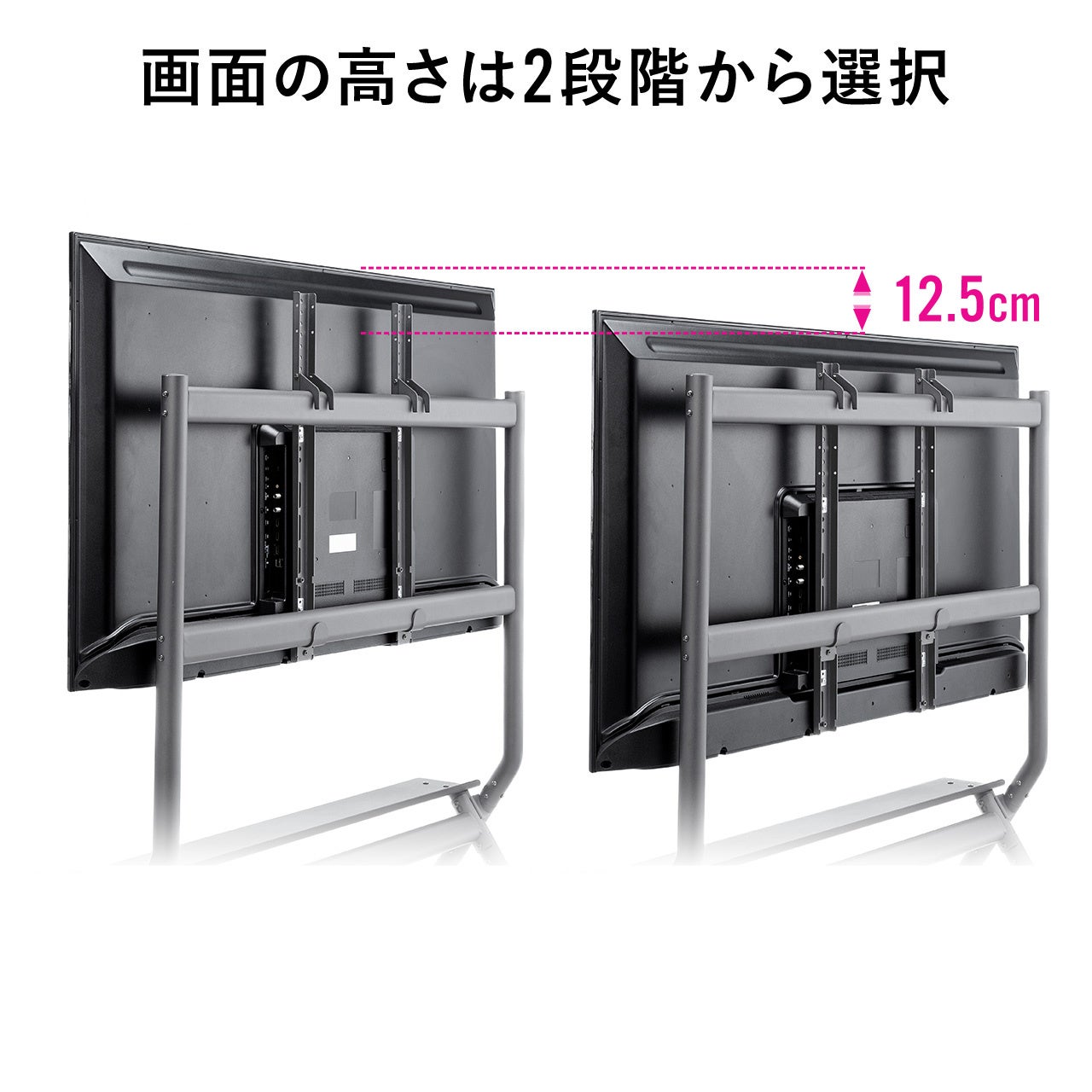 画面位置はブラケットのフックの位置を変更することで、12.5cm分変更することができます。