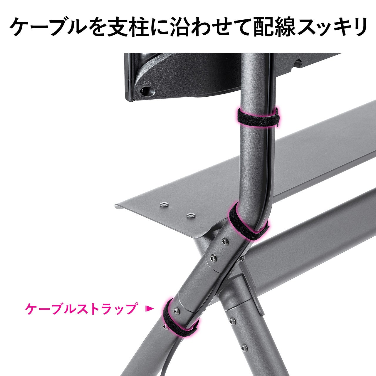 ケーブルを支柱に這わすための、ケーブルストラップ付きです。