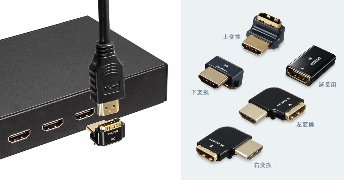 HDMIケーブルをすっきり配線できるL型アダプタ、中継アダプタなど5種を発売