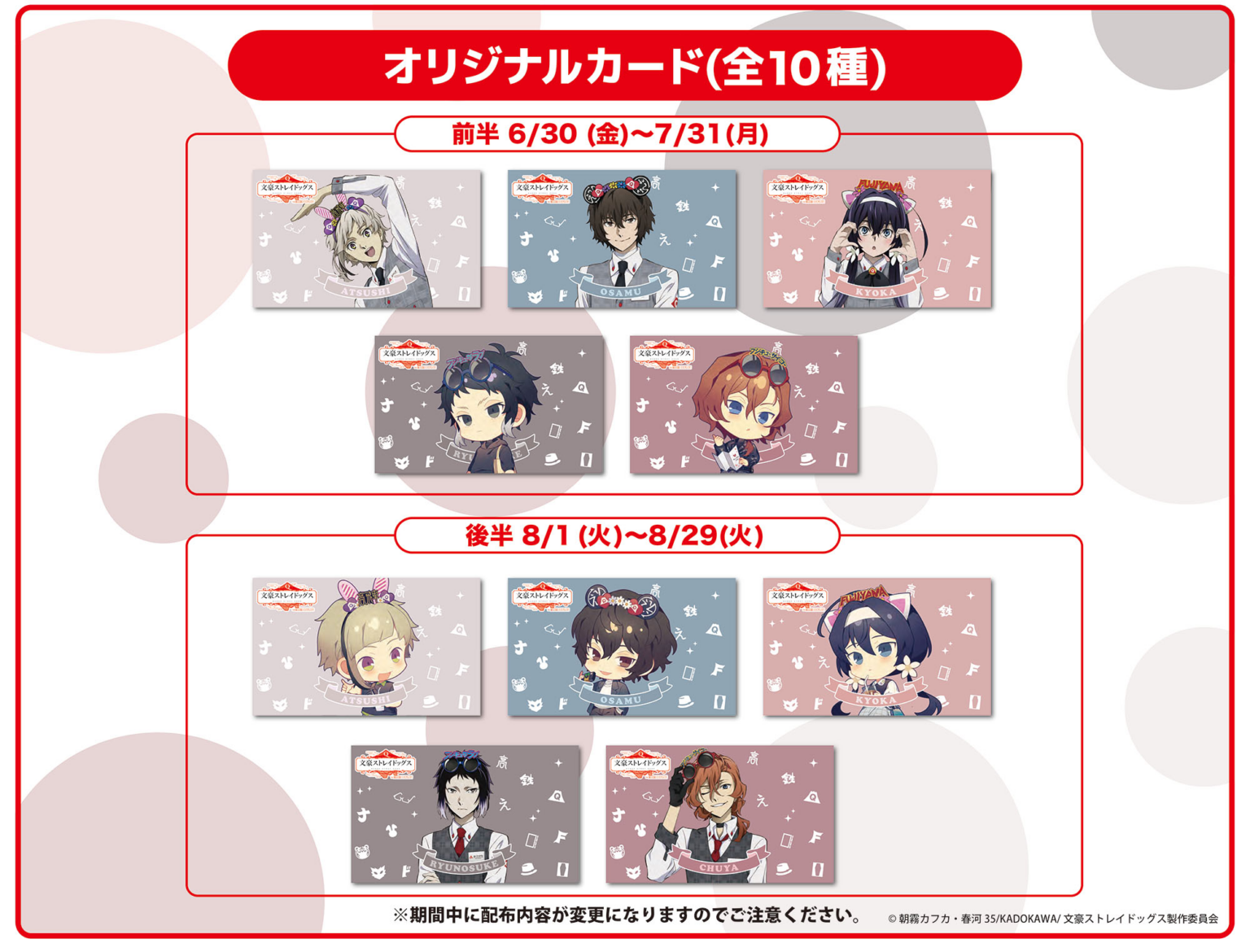 ※ランダム配布の為、ご希望のキャラクターはお選びいただけません。予めご了承ください。