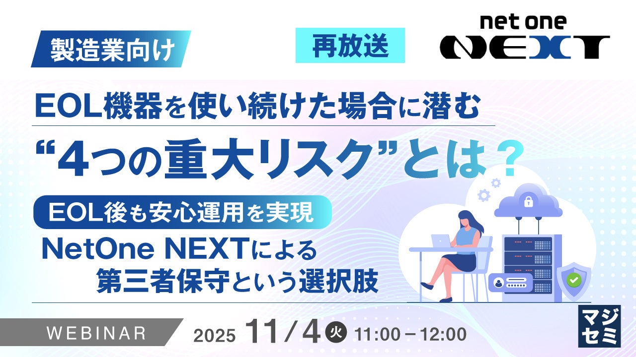 本セミナーでは、こうしたEOL機器を使い続けることで顕在化する「4つの重大リスク」 を具体的に整理し、それぞれが企業活動や事業継続にどのような影響を及ぼすのかを解説します。
