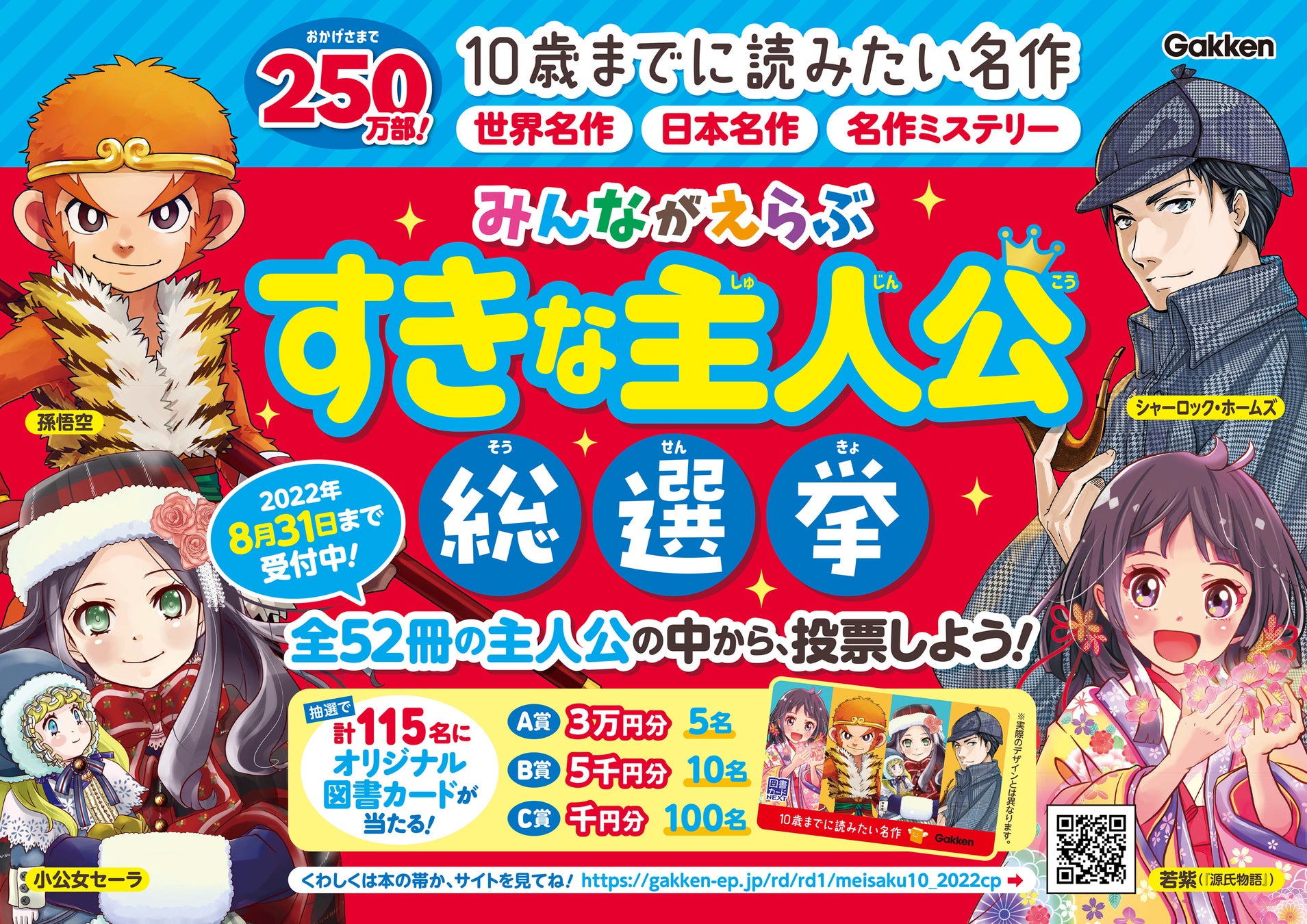 株式会社 学研ホールディングス(東京・品川/代表取締役社長:宮原博昭)のグループ会社、株式会社 学研プラス(東京・品川/代表取締役社長兼COO:南條達也)発行の児童書「10歳までに読みたい名作」シリーズでは、“みんながえらぶ すきな主人公総選挙”を開催中です。8月1日現在での中間開票結果を速報いたします。