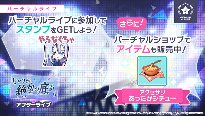 また、「いつか、絶望の底から アフターライブ」の開催に先立ち、1月21日(金)からバーチャルショップにて、アクセサリ「あったかシチュー」を販売中です。