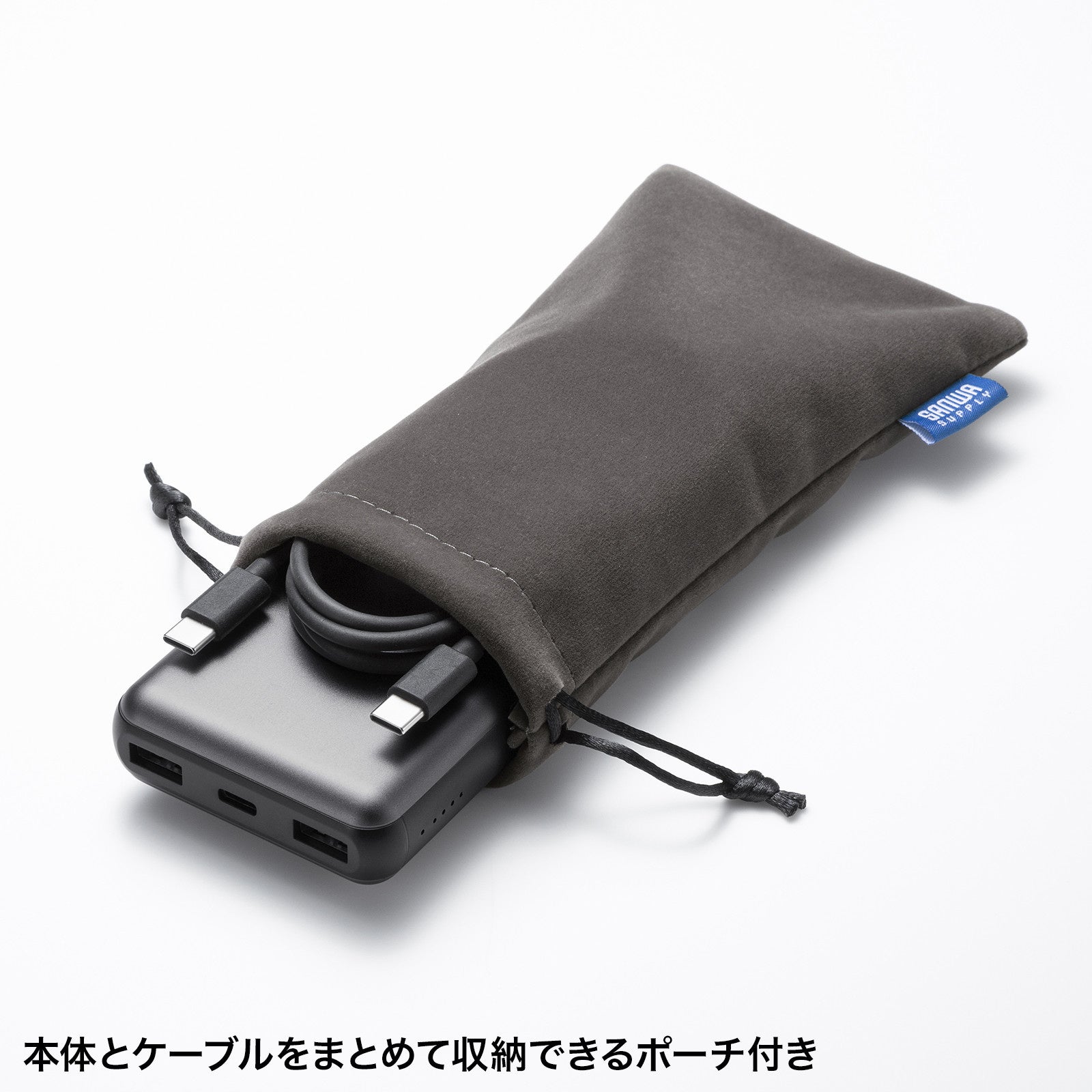機器への給電とモバイルバッテリー本体への蓄電の両方に使えるUSB PD規格に対応したType-Cケーブルを付属しています。