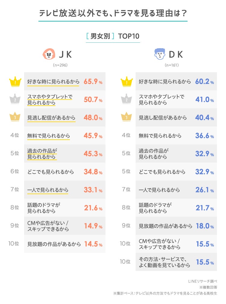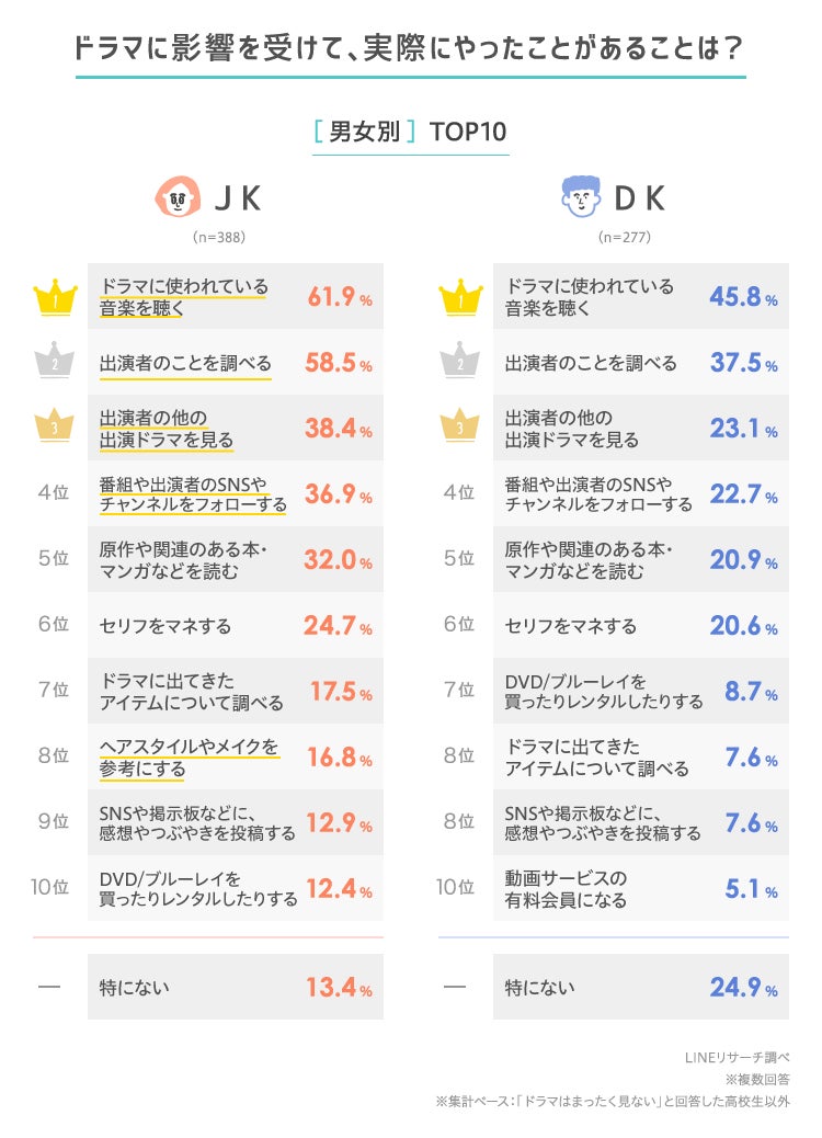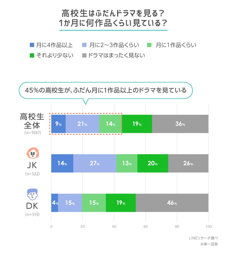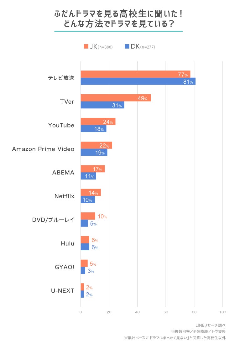 このたびLINEリサーチでは、日本全国の高校生を対象に、ドラマを見る方法や、いま一番注目している俳優/女優などについて調査しましたので、その結果をお知らせいたします。