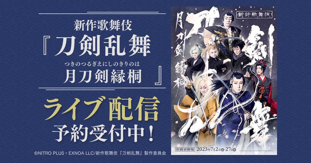 合同会社DMM.com(本社:東京都港区、会長 兼 CEO:亀山敬司 以下「DMM」)は、「新作歌舞伎『刀剣乱舞 月刀剣縁桐』」の7月2日(日)16:30初日公演と7月27日(木)12:00公演/16:30千穐楽公演 を「DMM TV」にてライブ配信いたします。本日6月26日(月)よりDMM TV特設サイトにてライブ配信の予約販売を開始いたしました。ライブ配信は公演終了後も楽しめる見逃し配信付きです。