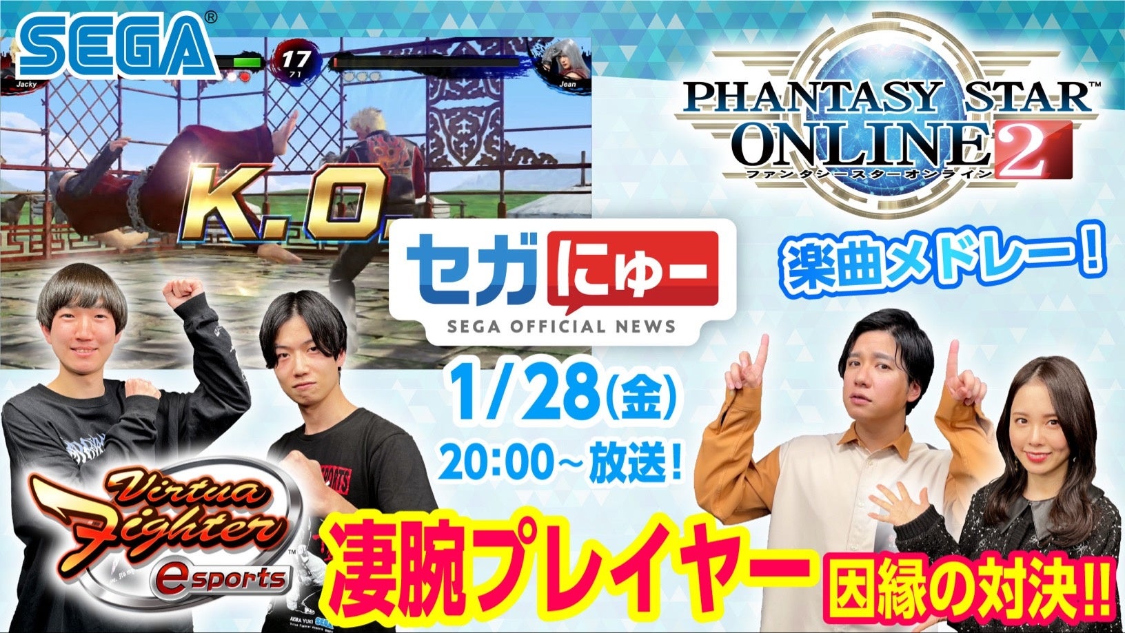 「セガにゅー」第8回、1月28日(金)配信『Virtua Fighter esports』公式大会出場プレイヤーのバルゴ選手としろ選手をゲストにエキシビションマッチを公開!