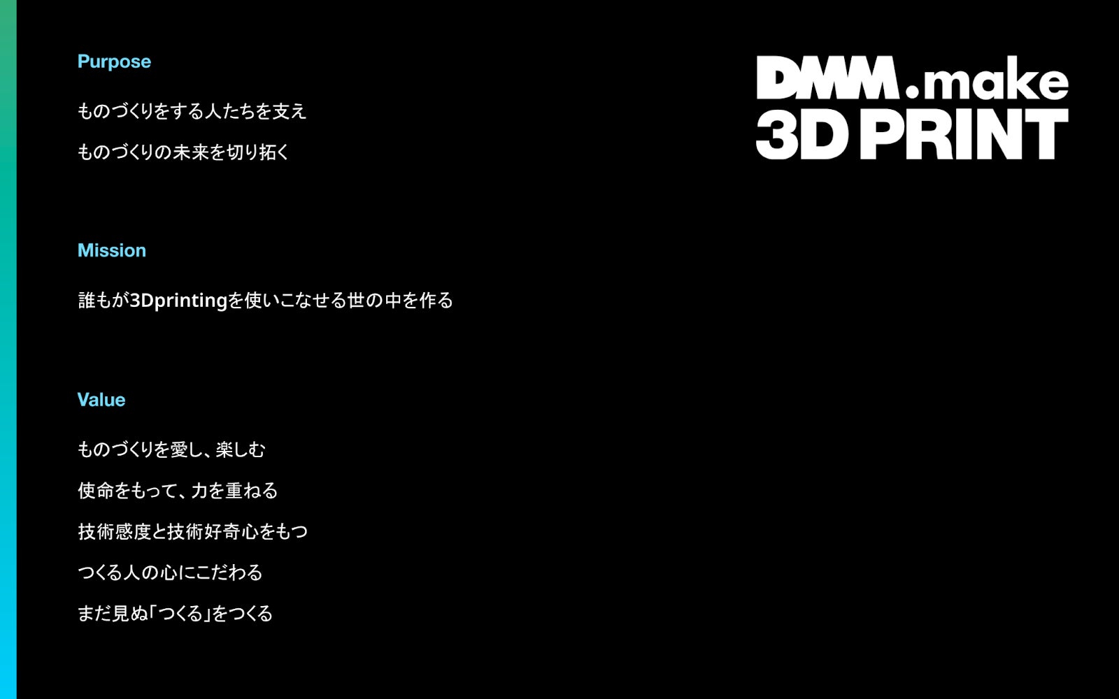 ブランドパーパス・ブランドミッション・ブランドバリューを新たに掲げ、DMM.make 3Dプリントが実現したい未来の姿をデザインに落とし込みました。