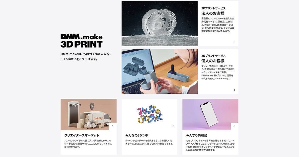 DMM.make 3Dプリントは、利用ユーザー数が国内最大規模を誇る3Dプリントサービスです。