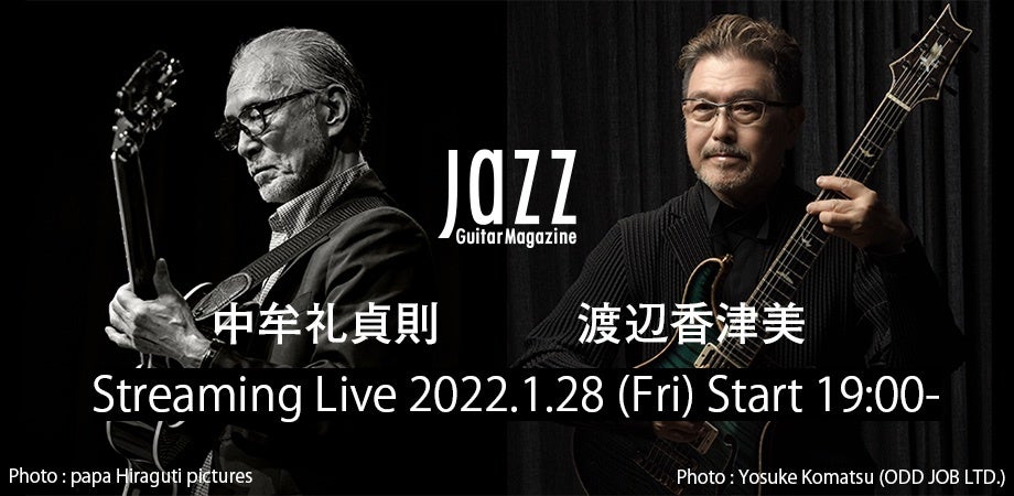 ジャズ・ギター専門誌『Jazz Guitar Magazine』主催の一夜限りのイベントとして、特別なギター・デュオ・ライブが実現しました。ともに日本のジャズを代表するレジェンド、中牟礼貞則と渡辺香津美。1960年代に、中牟礼が講師を務めていた音楽教室に渡辺が入会して以来、50年以上の師弟関係が続いています。そんな二人の息の合った演奏をオンラインで楽しめる、非常にレアな機会です。