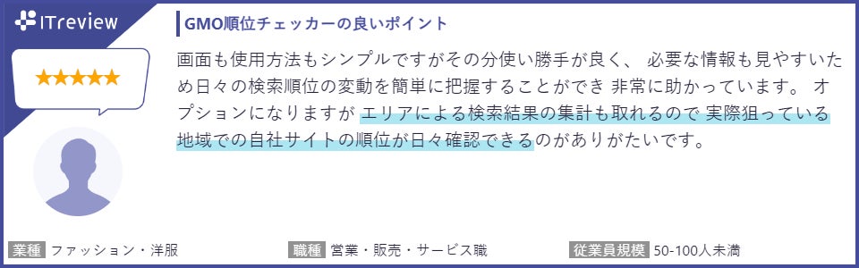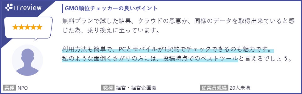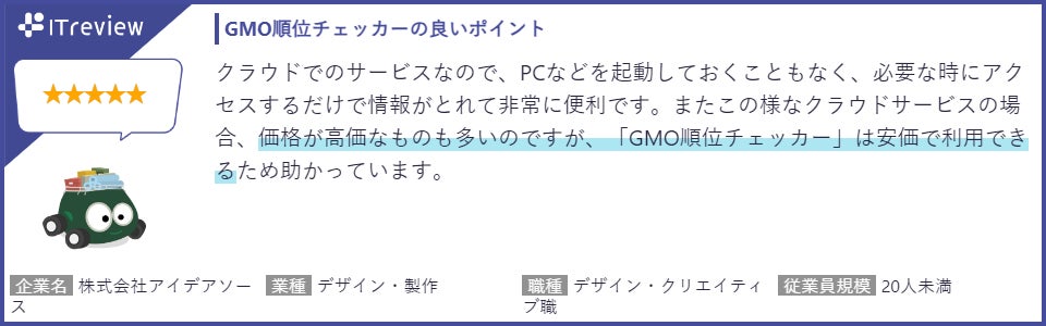 【「ITreview」に寄せられた「GMO順位チェッカー」利用者の声(一部抜粋)】