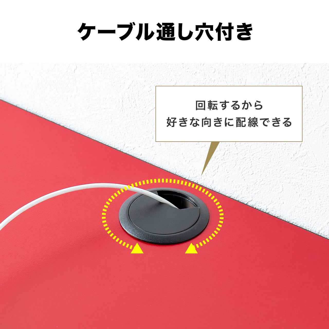 天板には、ケーブル通し穴付きで、ケーブル配線がしやすくなっています。