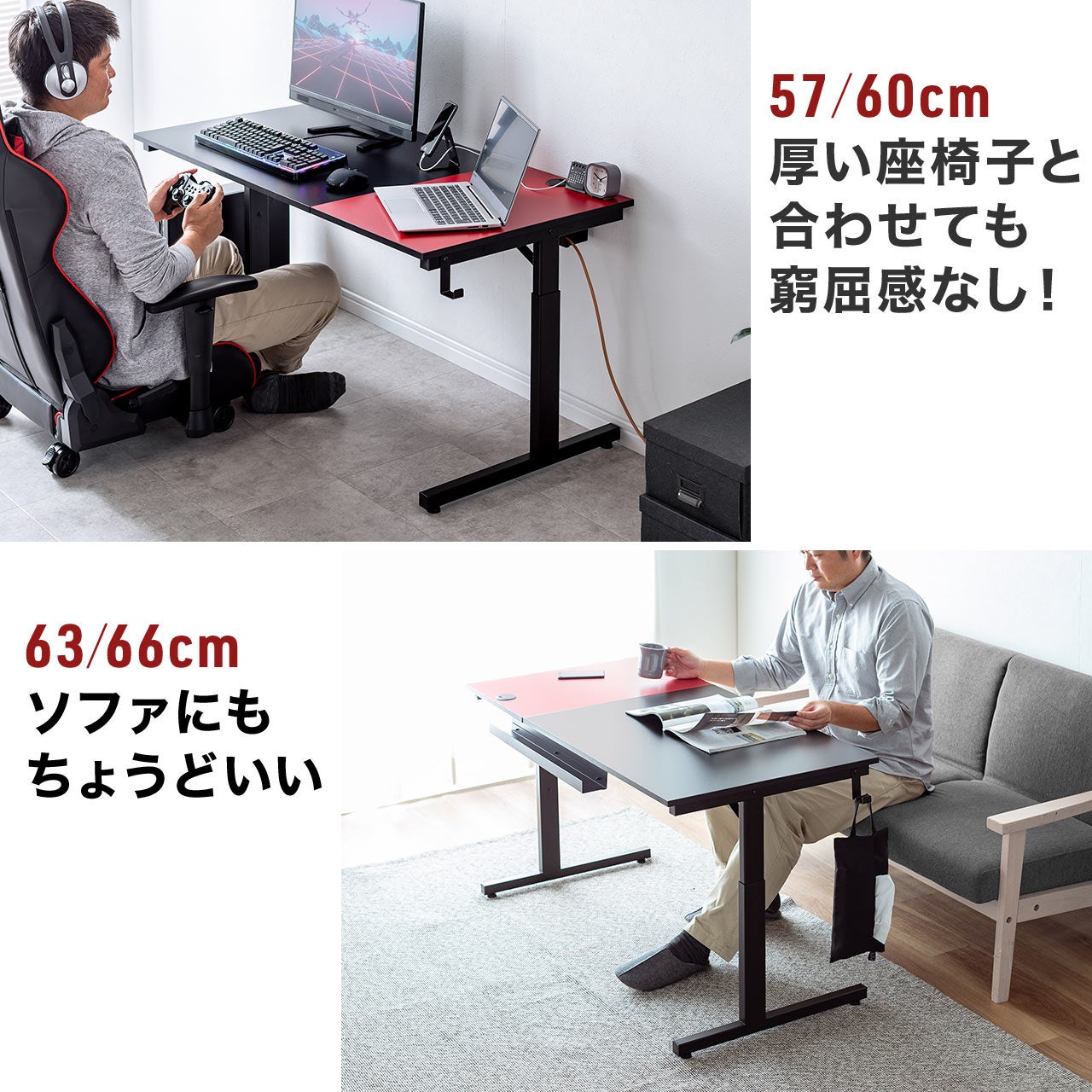 シンプルデスク 幅120cm×奥行60cm 高さ変更可能 高さ57~78cm バイカラー アジャスタ
