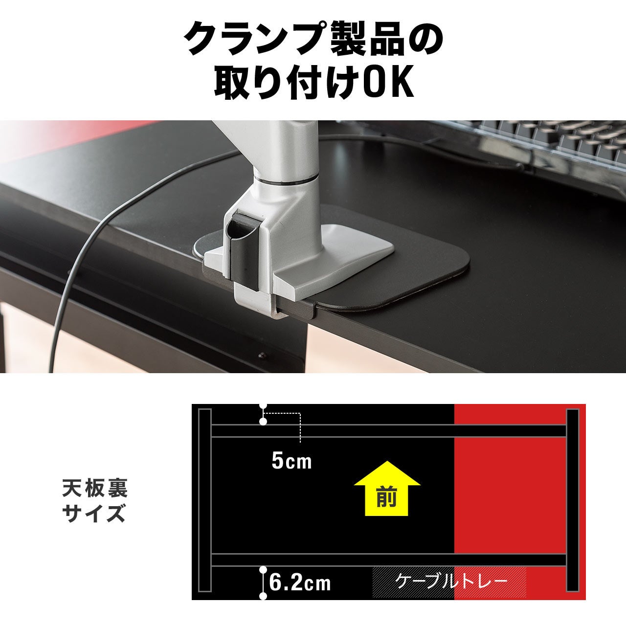 モニターアームなどのクランプ製品の取り付けが可能です。