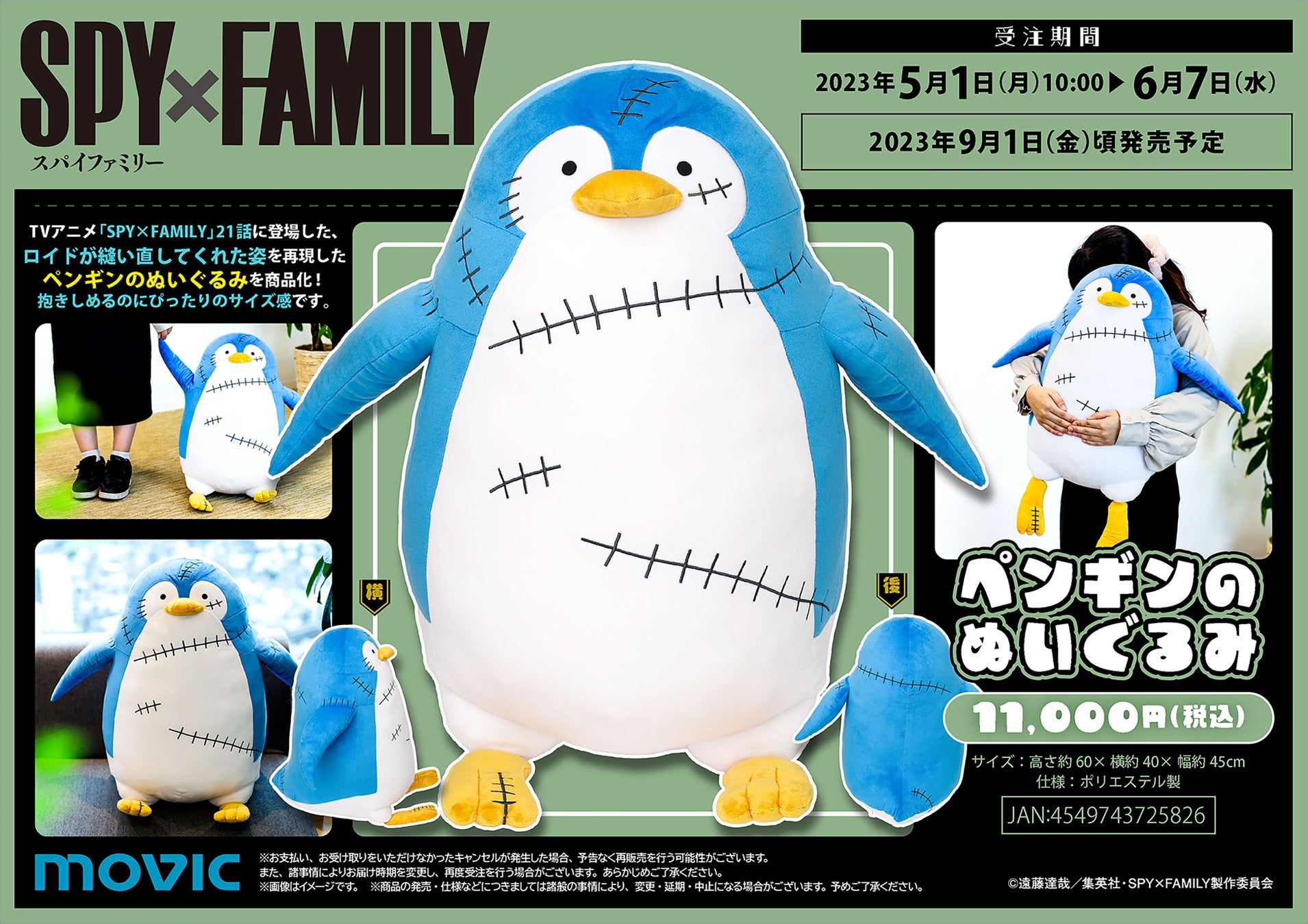 アーニャがロイドからプレゼントされたペンギンのぬいぐるみがロイドが縫い直した姿を再現したバージョンにて発売決定!高さ約60cmで抱きしめるのにぴったりのサイズ感です。こちらの商品の受注期間は2023年5月1日から6月7日まで!全国のアニメイト、アニメイトオンラインショップ、ムービック通信販売等にてご予約受付中!