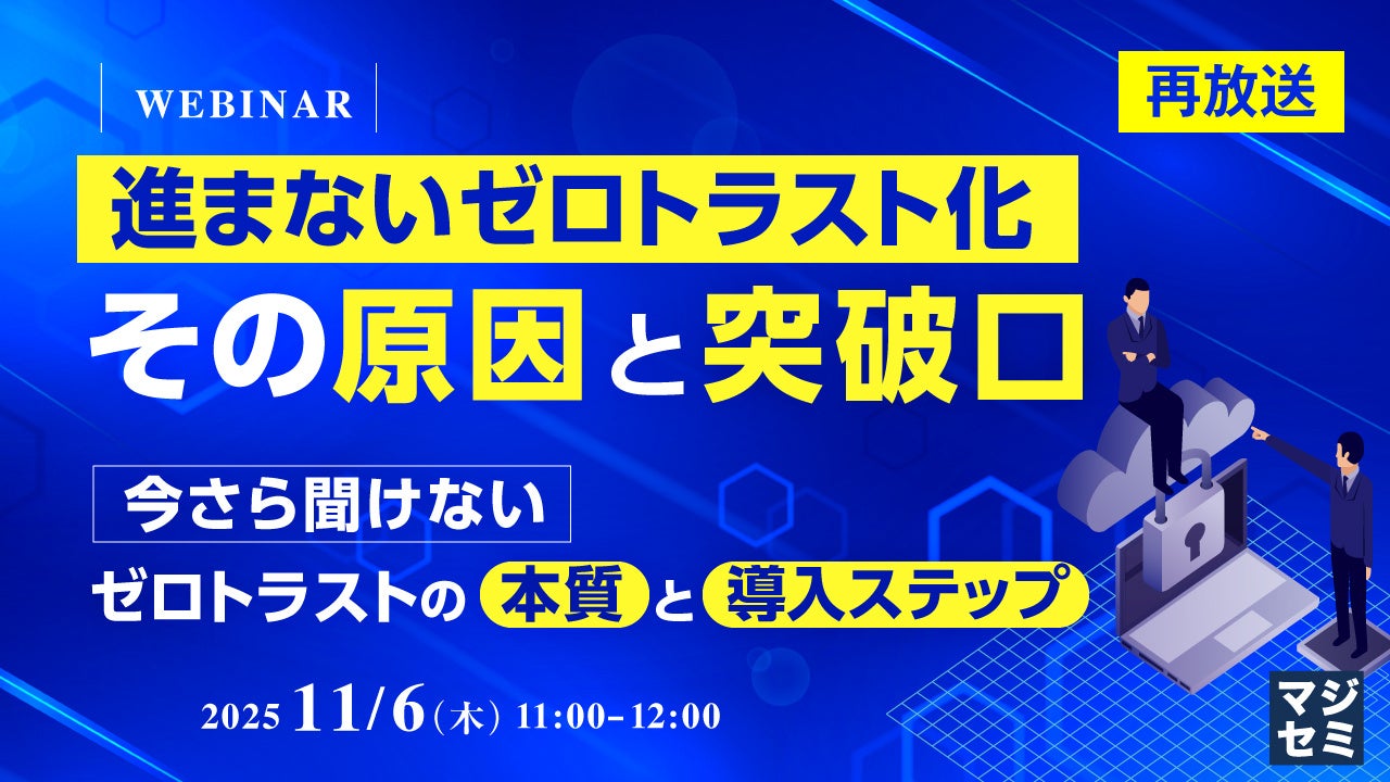 マジセミ株式会社は「【再放送】進まないゼロトラスト化、その原因と突破口」というテーマのウェビナーを開催します。