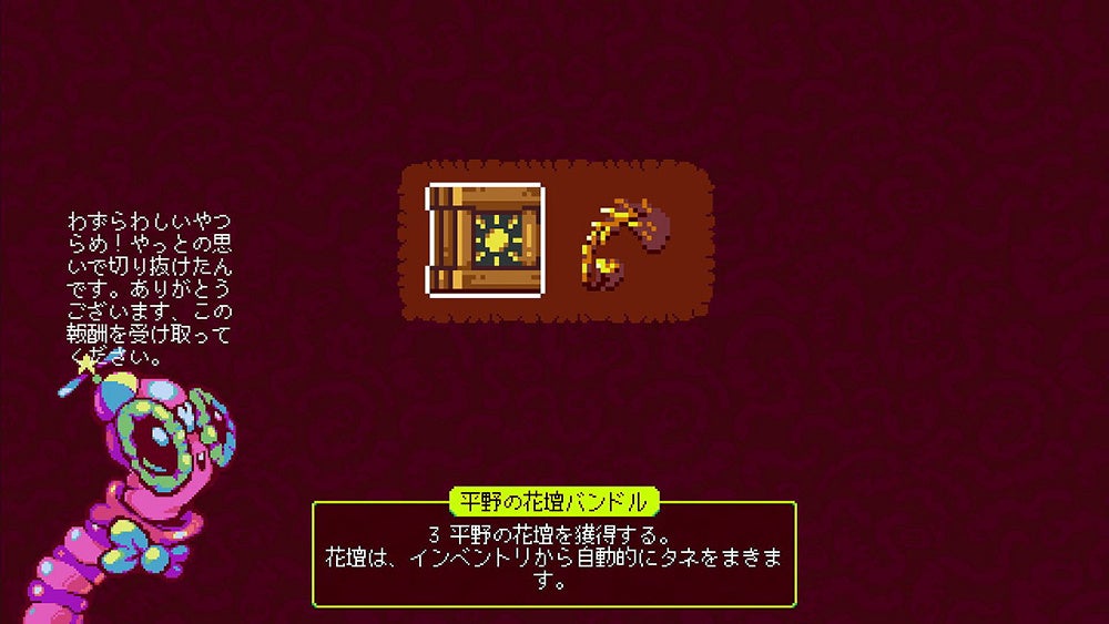 フィールド上の「ワームジー」を助けるか、作物を一定量収穫する事で彼(?)からアイテムを受け取る事ができます。又、今回のアップデートで花壇システムに関連する新アイテムが多数追加されます!
