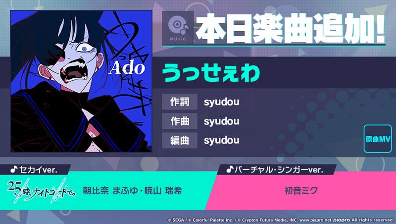 著作権表記:© SEGA / © Colorful Palette Inc. / © Crypton Future Media, INC. www.piapro.net All rights reserved.