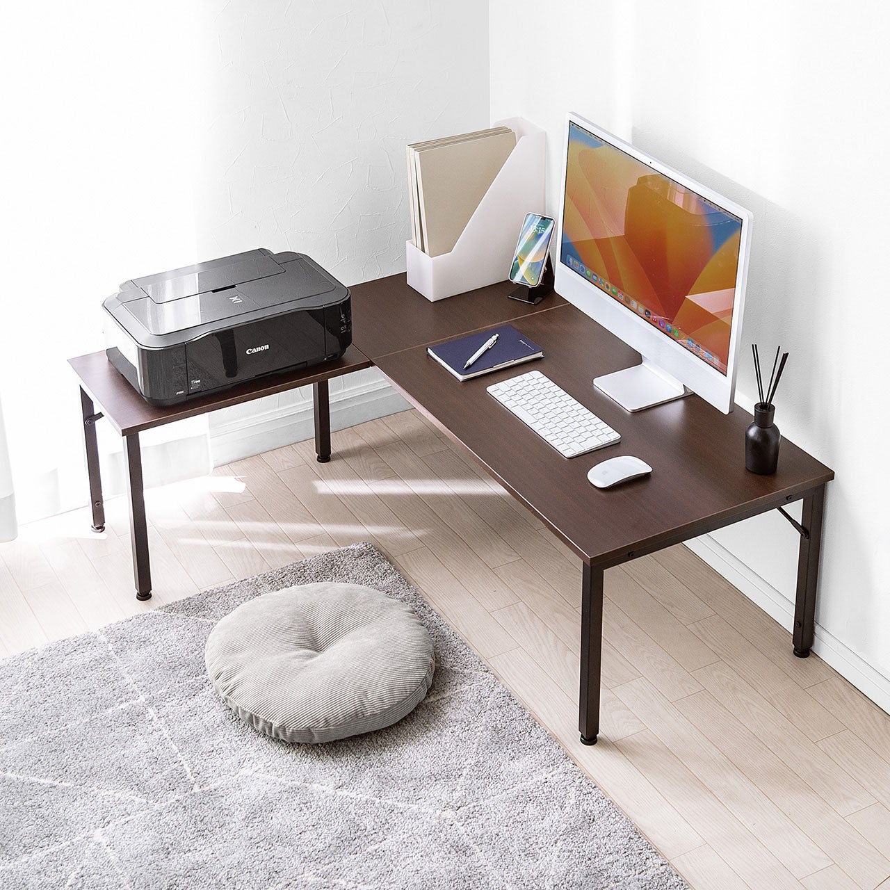 本製品は広い作業スペースを確保できるL字型のローデスクです。見た目はコンパクトながら、パソコンや書類、プリンターなどを一式載せられます。