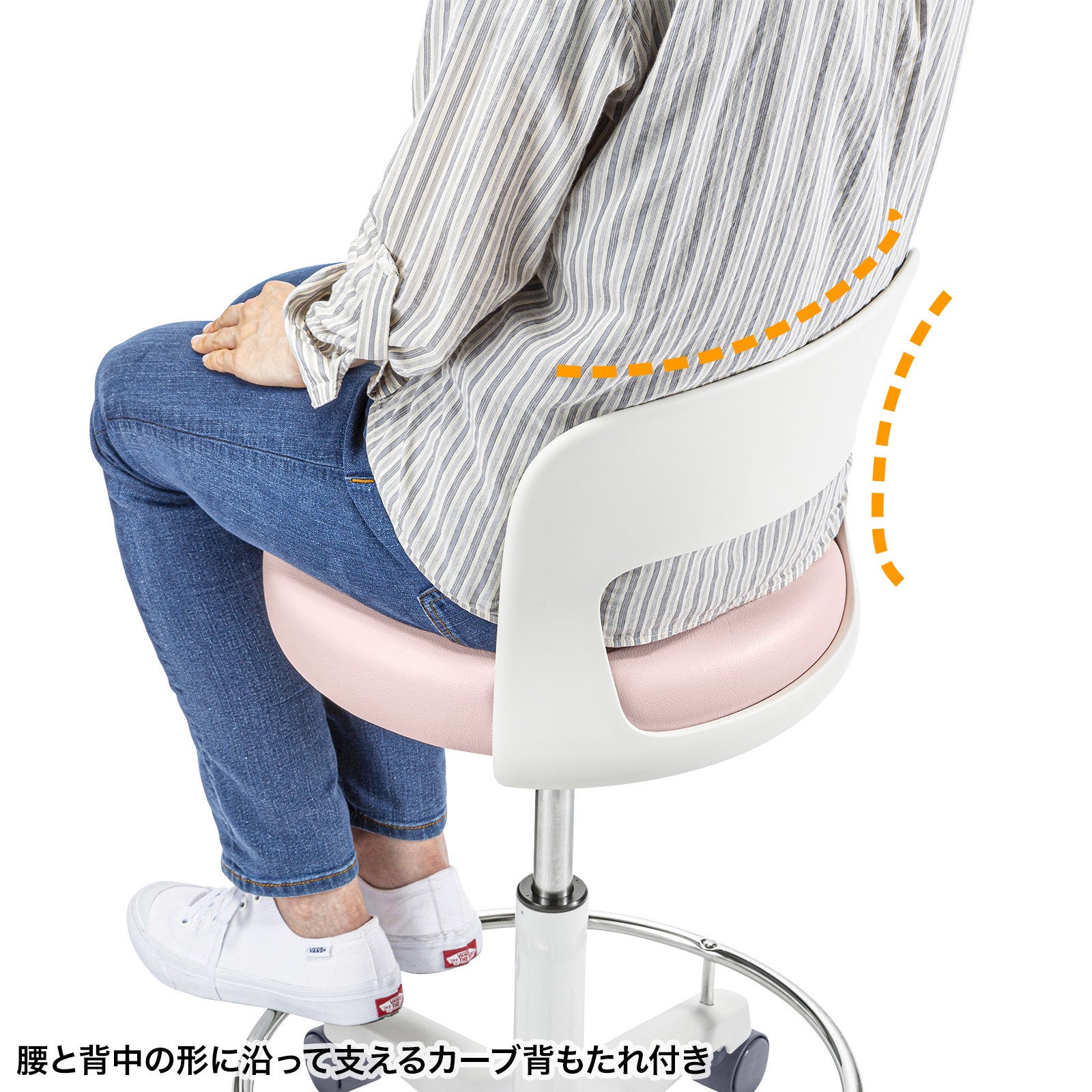 腰と背中の形に沿って支える背もたれ付きで身体を優しく支えます。