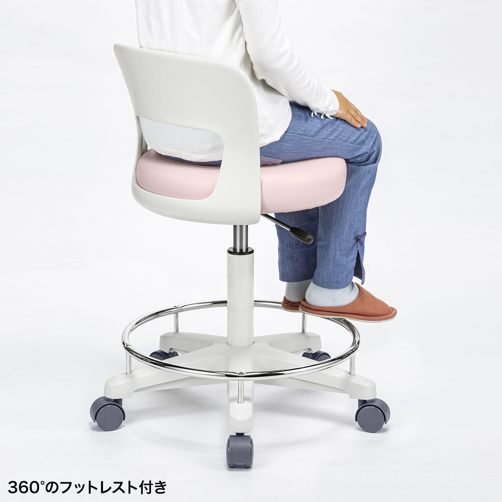 乗り降りがしやすいよう、座面を360°回転することができます。フットレストも360°どこからでも使えるので、足がぶらつきません。