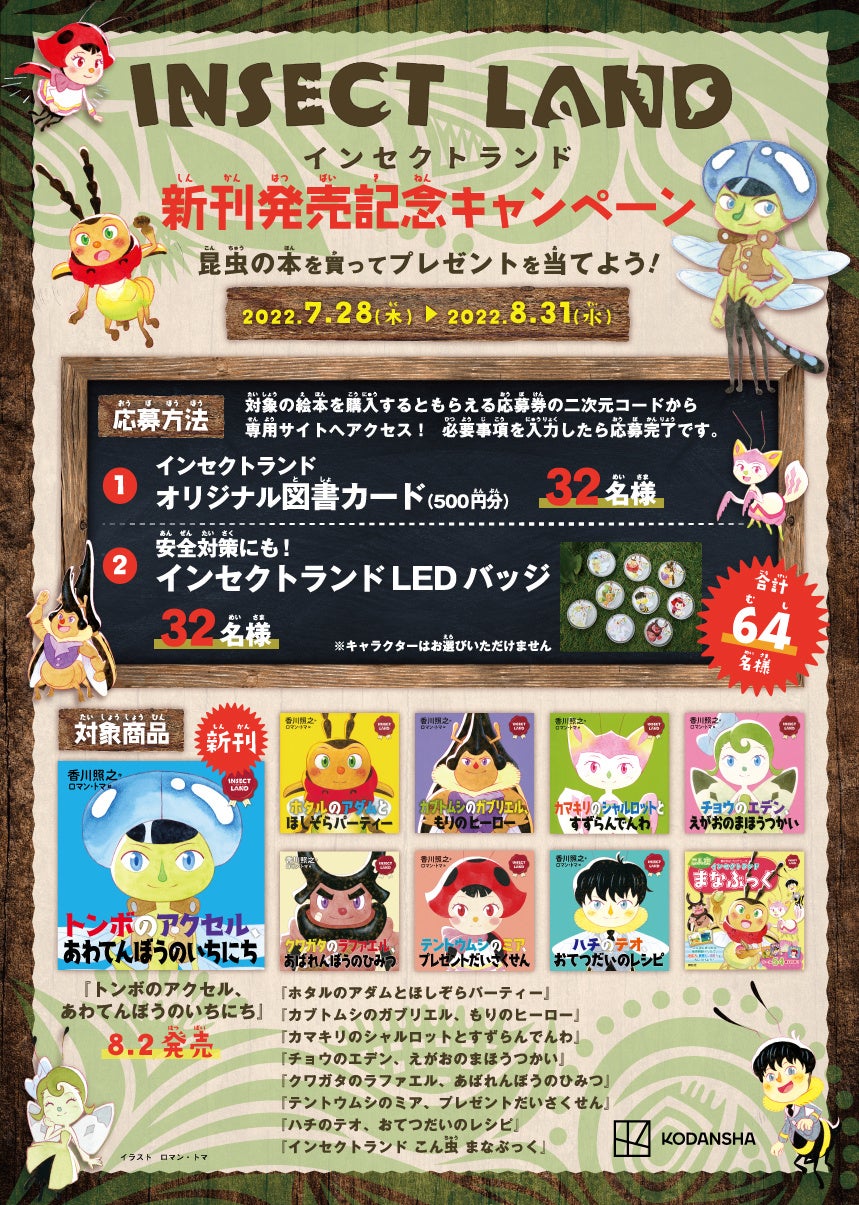 俳優・香川照之さんの昆虫愛から生まれた絵本シリーズ「インセクトランド」の8作目となる『INSECT LAND(インセクトランド)トンボのアクセル、あわてんぼうのいちにち』を講談社から発売しました。