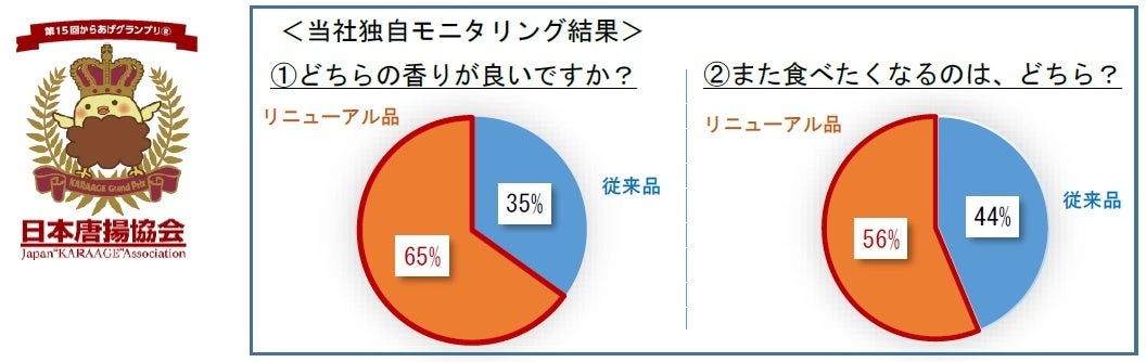 こうした改良を加え、当社のモニタリング調査※2にて、「どちらの香りが良いか?」は従来品の約1.9倍、「また食べたくなるのは、どちらか?」では約1.3倍とリニューアル品の評価が高く、特に味と香りで改善しているとの高い評価を得ています。