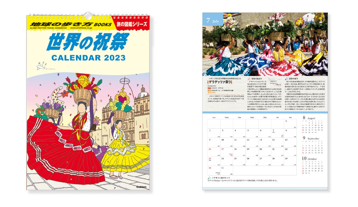 - 1979年創刊の旅行ガイドブックのパイオニア「地球の歩き方」のカレンダー。世界各地で開催されるお祭りを各月で紹介しています。
